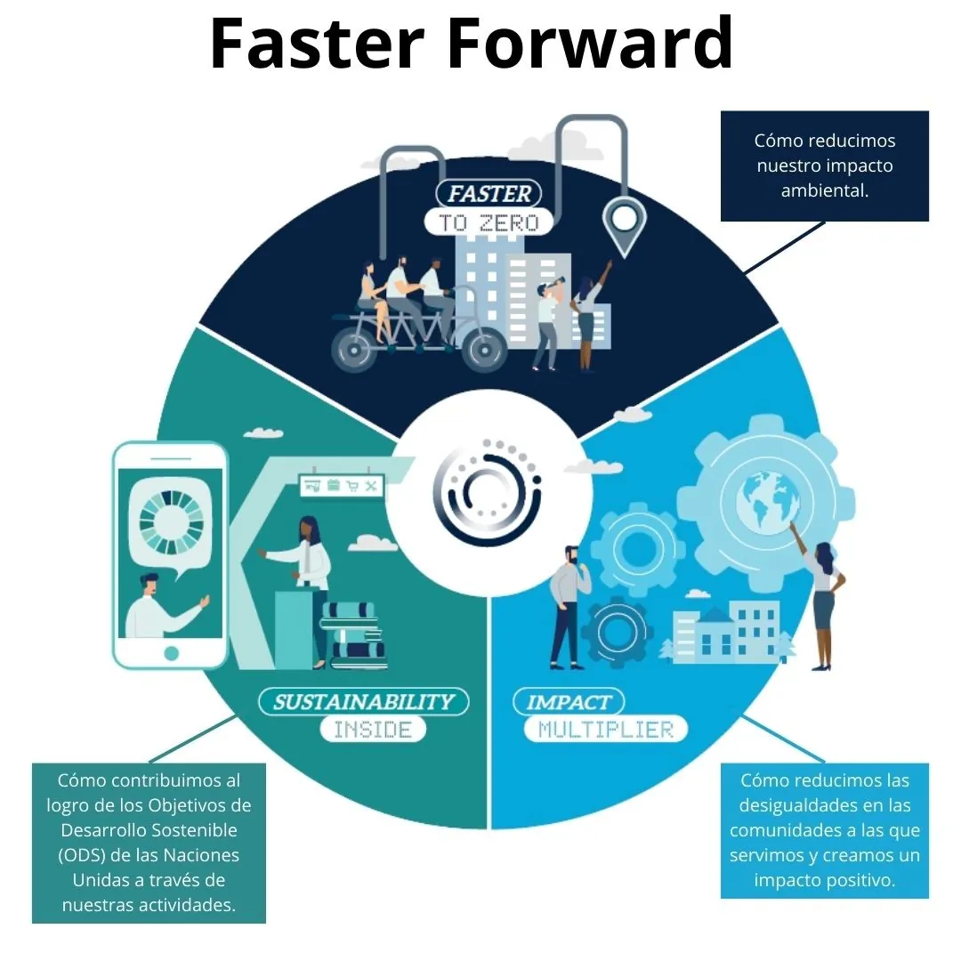 En Plastimagen nos comprometemos a integrar la sostenibilidad en todas nuestras acciones y estrategias diarias. Para lograr este objetivo, hemos implementado el programa Faster Forward, el cual se centra en tres pilares fundamentales:(Faster to Zero, Sustainability Inside e Impact Multiplier) con una variedad de actividades que abarcan nuestras operaciones comerciales, marcas, productos y nuestro impacto en la comunidad.